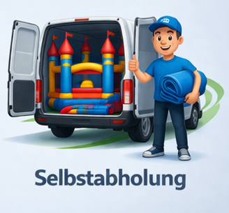 Selbstabholung ist nach Absprache möglich und wird mit 20% Rabatt (nur Hüpfburgen) belohnt. Selbstverständlich erhalten Sie bei Bedarf eine kurze Einweisung.